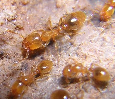 Rara vez se las verá forrajear por la superficie. Sin tener que levantar piedras, que normalmente es la manera de toparse con ellas, o mirar el contenido de trampas de caída, las únicas veces que las he encontrado ha sido en circunstancias muy especiales. Una vez, se encontraban debajo del portaobjetos de vidrio que hacía de soporte al atún de unos cebos, presumiblemente sorbiendo ávidamente el aceite que se desbordaba hacia el suelo. En otra ocasión, estaban debajo de un trozo de comida tirado en el suelo y completamente rodeado de Tetramorium, como un montón de minúsculos trocitos de plástico amarillo (a tal cosa me recuerda su brillo).
