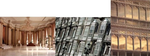 El granito blanco gallego de gran calidad muestra detalles en piedra sobre las fachadas de los edificios con gran armonía en el conjunto. Desde los edificios de estilo ecléctico donde la cantería del granito alcanza su máxima expresión y delicadeza, hasta el uso con expresión brutalista del granito como se observa en el monasterio de la Visitación de las Salesas Reales, de estilo regionalista, construido por el famoso arquitecto Antonio Palacios