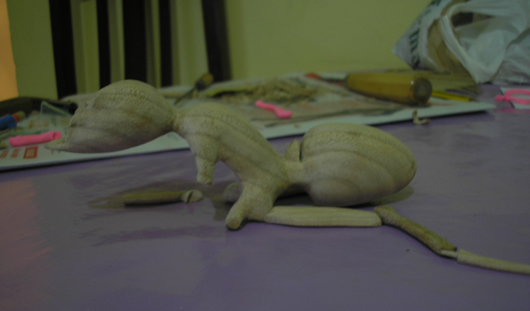 Talla en madera en proceso de elaboración por el escultor Andres Crujeiras Villaverde