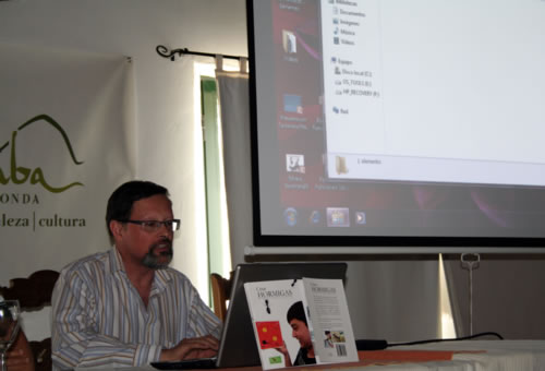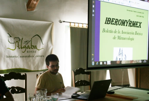 Después de una buena comida, el Dr. Xavier Espadaler nos hace una breve introducción. A continuación, los talleres de identificación, no sólo de las especies encontradas hoy en La Algaba, sino también de una gran cantidad de muestras de colecciones de nuestros asistentes. En la foto de abajo, Xavier Espadaler haciendo la introducción sobre las hormigas en el continente europeo, y su identificación.