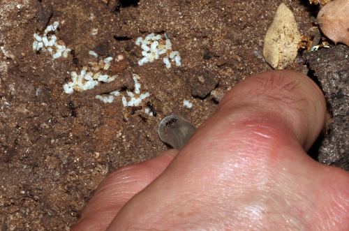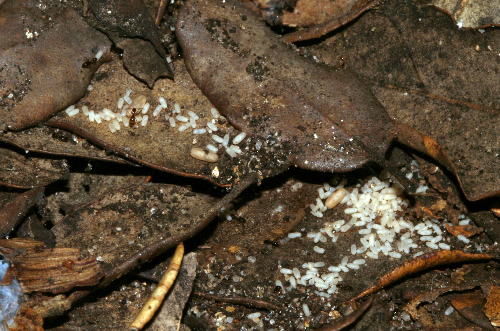 Tapinoma. Nido con larvas, debajo de las hojas secas.