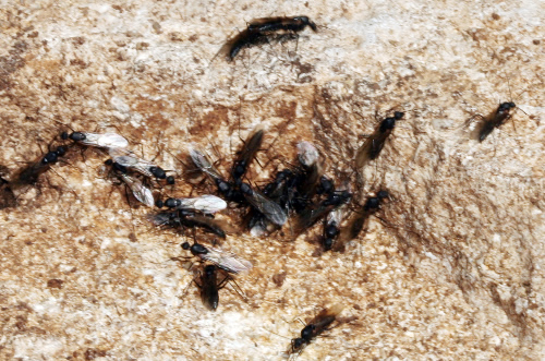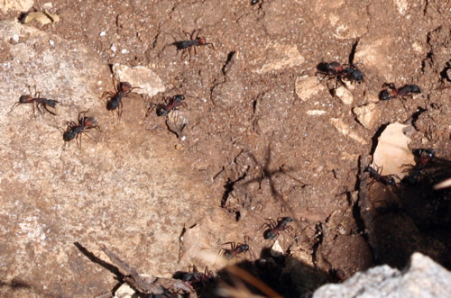 Camponotus cruentatus. Multitud de obreras, cerca del nido.