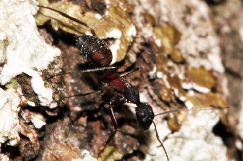 Camponotus cruentatus. Obrera, bajando de un árbol.