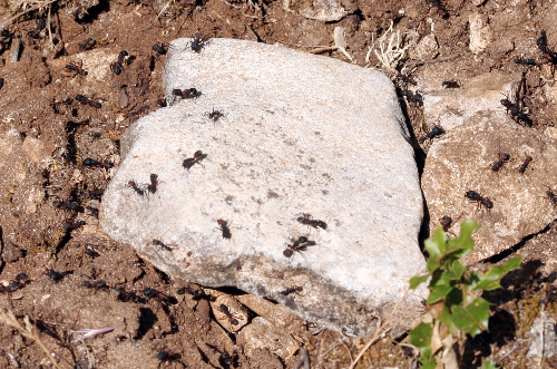 Aphaenogaster. Nido debajo de las piedras.
