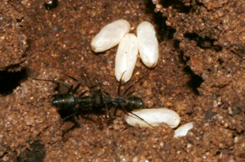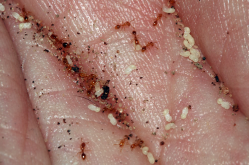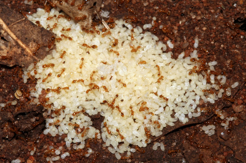 Tapinoma. Nido con huevos y larvas.
