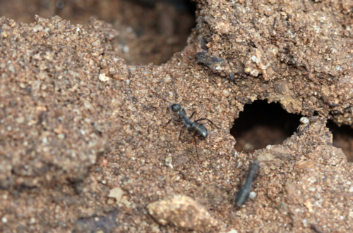 Camponotus cruentatus. A la salida de su hormiguero.