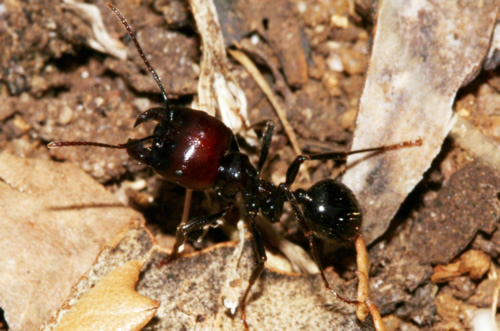 Camponotus cruentatus. Obrera llevando fuera del nido un cadáver