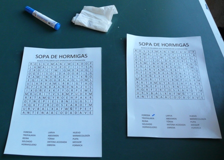 1) Una sopa de hormigas, que era una como una sopa de letras, pero con palabras que aparecían en el texto de la exposición. Para facilitar la tarea las palabras estaban listadas debajo de la sopa. Yo competí dos veces… y perdí, debo de ser muy lento.