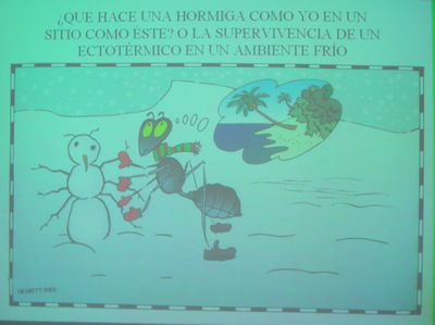 Por cierto, además, al final de la jornada todavía tuvimos la suerte que el Dr. Alberto Tinaut nos impartiera una interesantísima charla sobre la adaptación al frío de la hormiga Proformica longiseta «¿Qué hace una hormiga como yo en un sitio como éste?»: