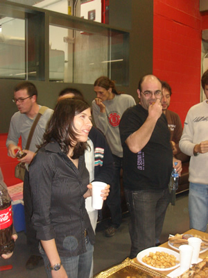 Fue una jornada en la que nos reencontramos muchos socios de la AIM. En esta instantánea del aperitivo que tuvo lugar a continuación, tenemos a nuestra feliz protagonista observada también con satisfacción por nuestro consocio David Casellas, que por cierto ya está en la recta final para seguir de aquí pocos meses los mismos pasos que su compañera: